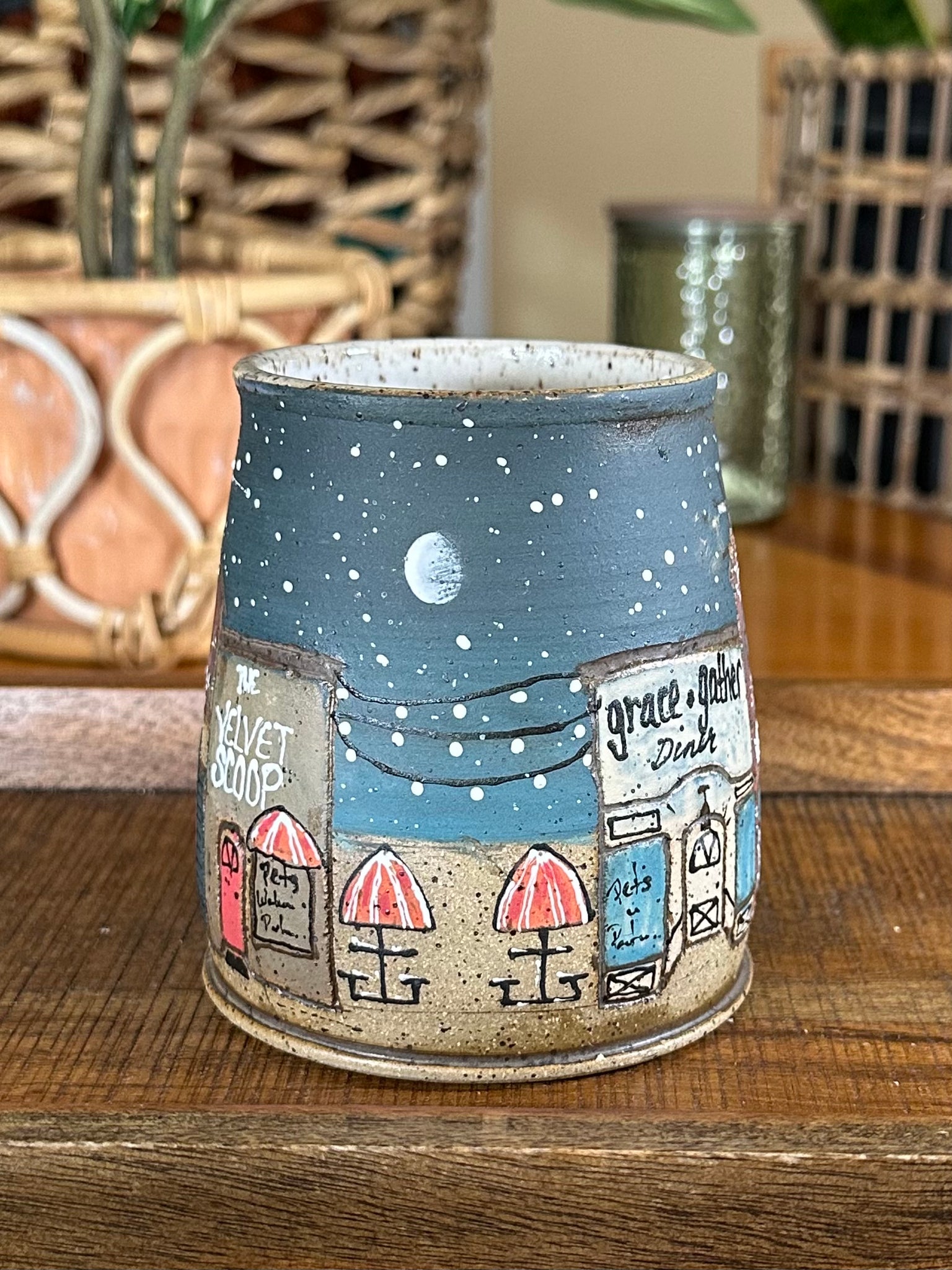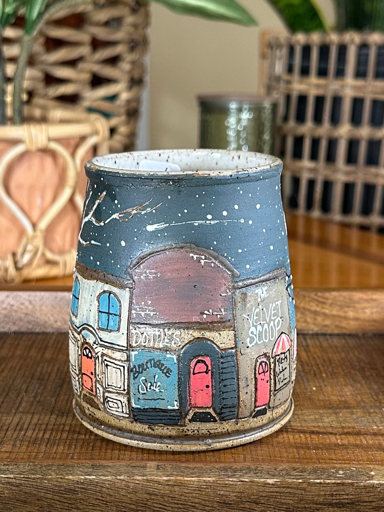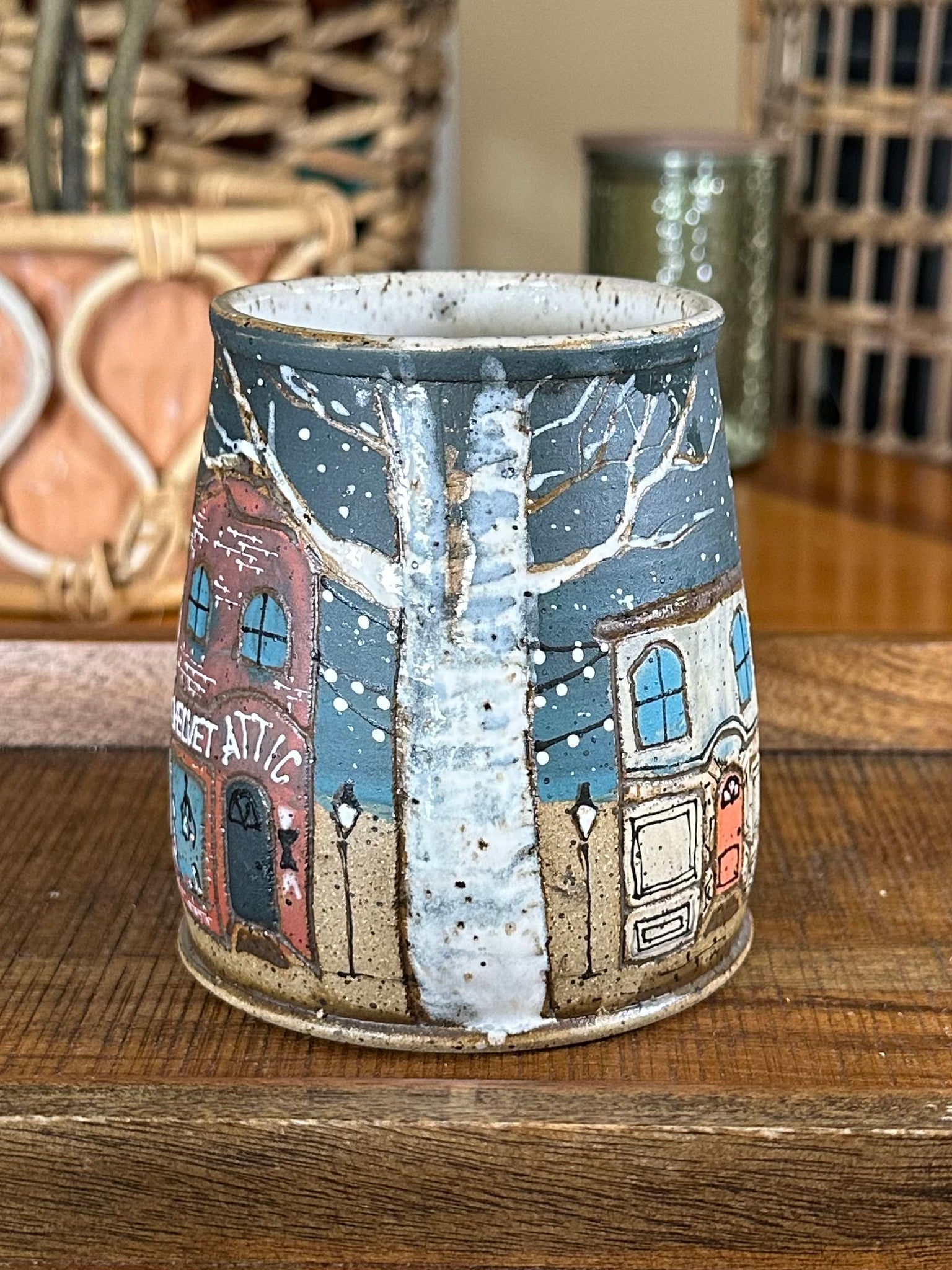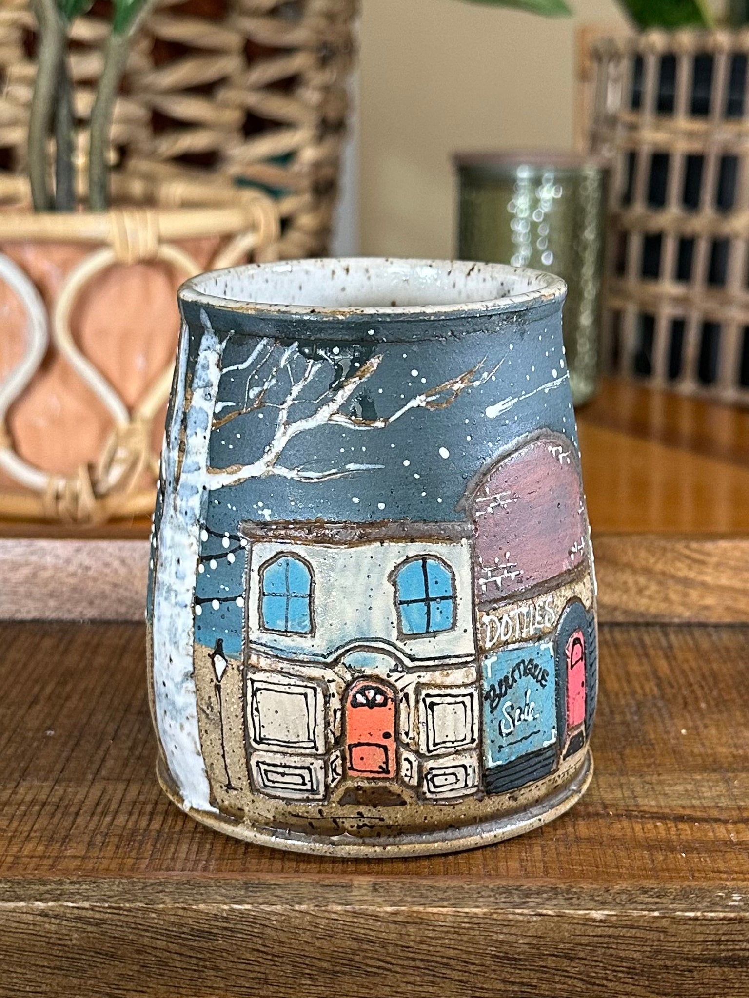 This Cedar Creek Lane Tumbler (no handle) is handmade with love, creativity, and intention. Each piece is first hand-carved in my signature freehand style, then individually hand-glazed, making every mug truly one of a kind.